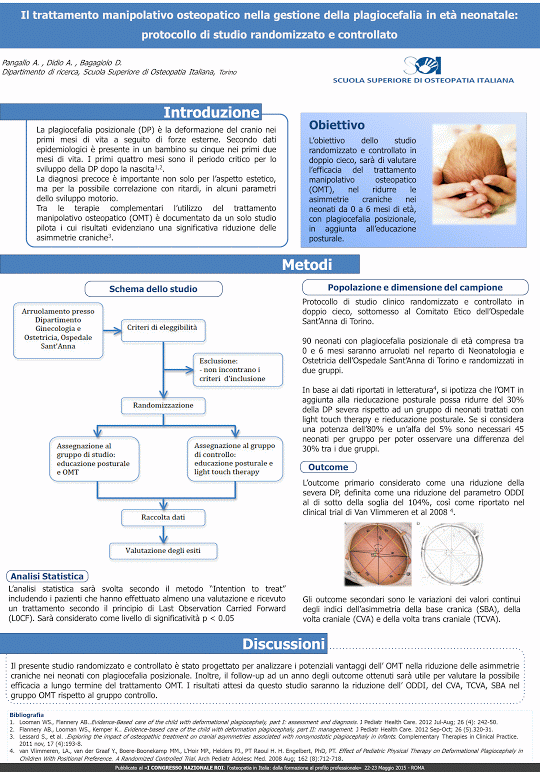 Presentazione orale: La terapia manipolativa osteopatica riduce le asimmetrie craniche nei neonati con plagiocefalia non-sinostotica. Studio randomizzato controllato. (Donatella Bagagiolo, Claudio Giuseppe Priolo, Maria Elena Favre, Antonella Pangallo, Alessia Didio, Marco Sbarbaro, Tiziana Borro, Silvia Daccò, Paolo Manzoni, Daniele Farina)